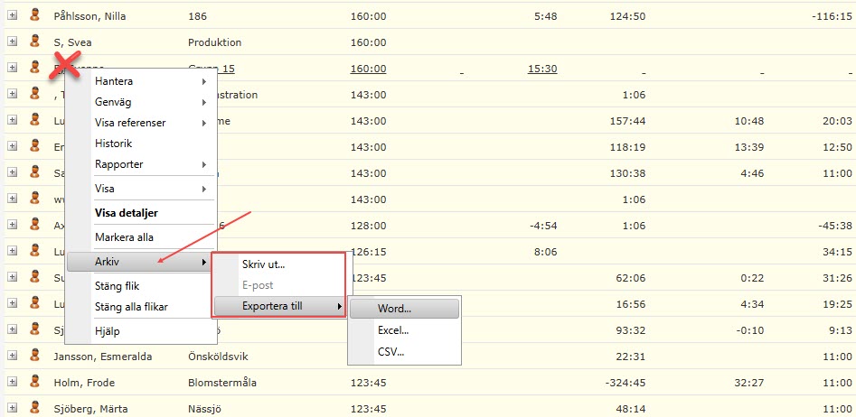 Alla listor och vyer i programmen går att skriva ut, spara som PDF eller exportera till andra program för vidare bearbetning.
